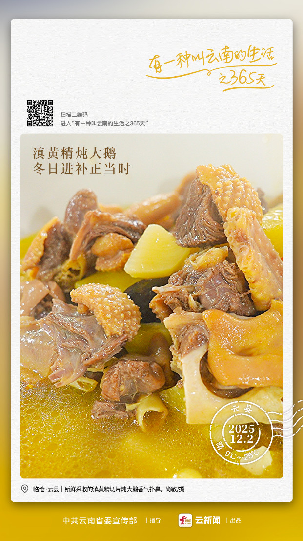 这锅炖菜,藏着云县的好水土,补气血又暖身子,正是“有一种叫云南的生活”该有的滋味——取自自然,暖在日常。天冷的时候,一家人围坐在一起,喝一碗热腾腾的滇黄精鹅汤,既舒服又踏实,把冬天的寒意一点点驱散。